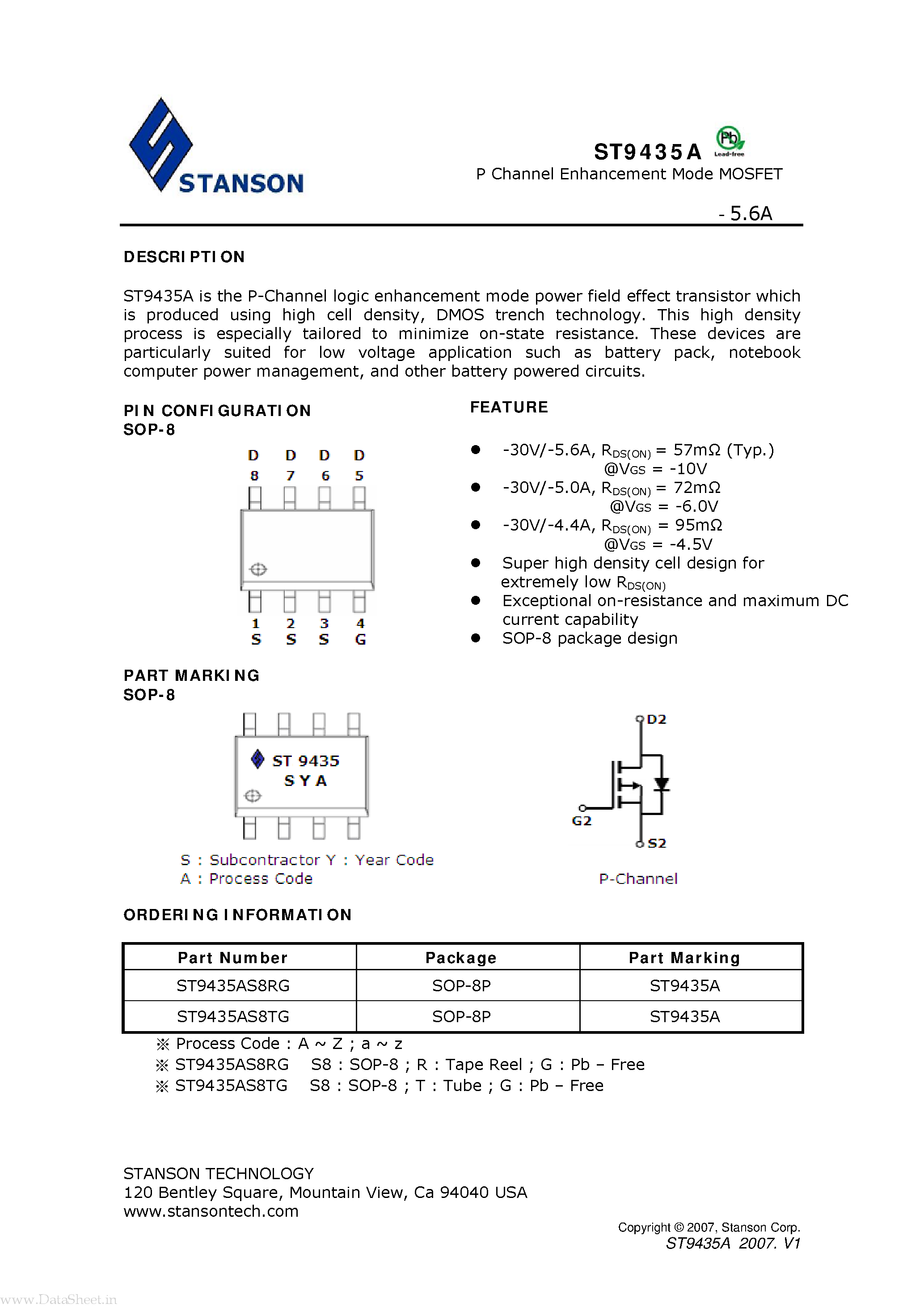 ST9435A Datasheet Stanson Technology pdf data sheet FREE from www.radioradar.net