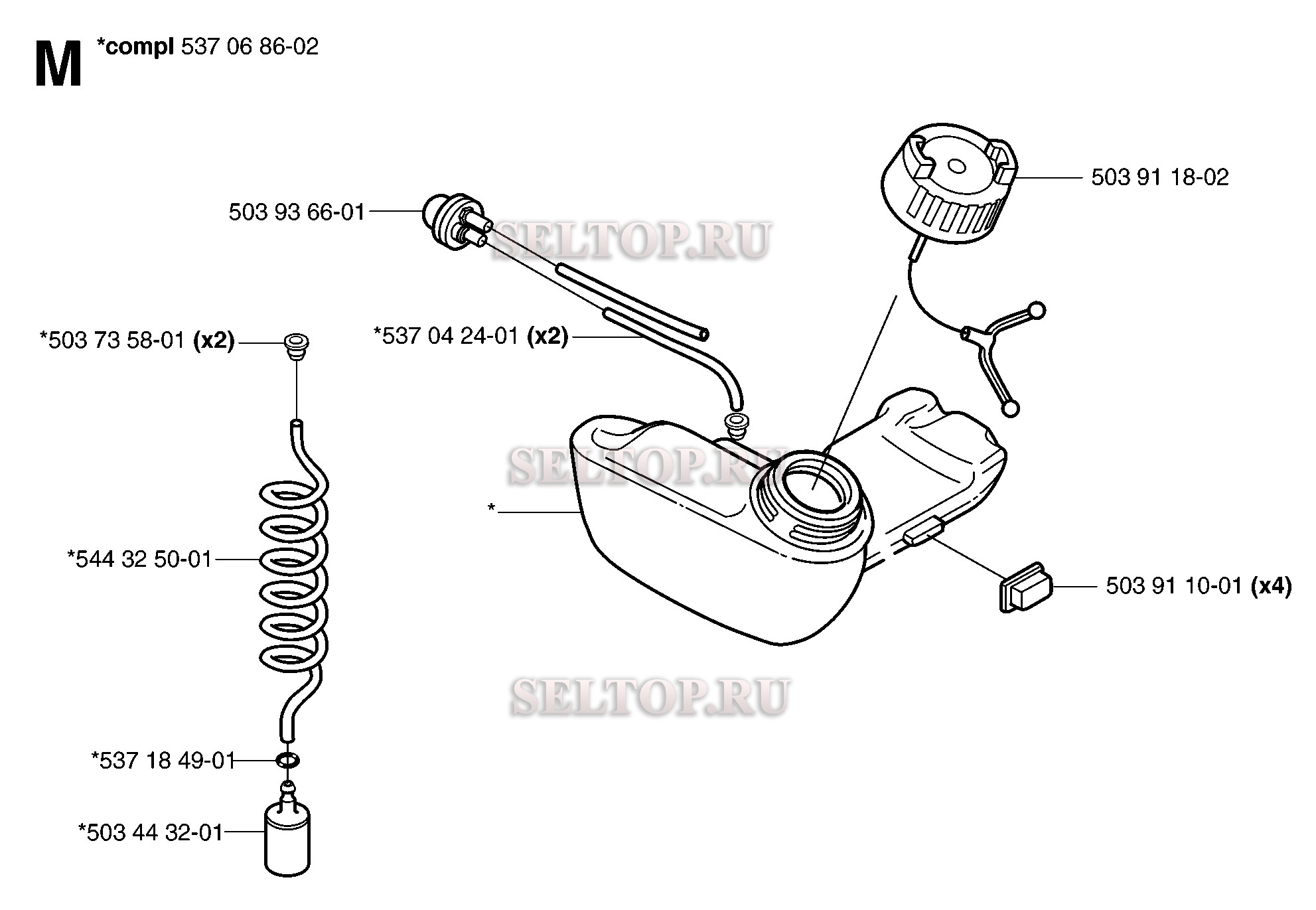 Топливная система. Деталировка бензокосы Husqvarna 323 R