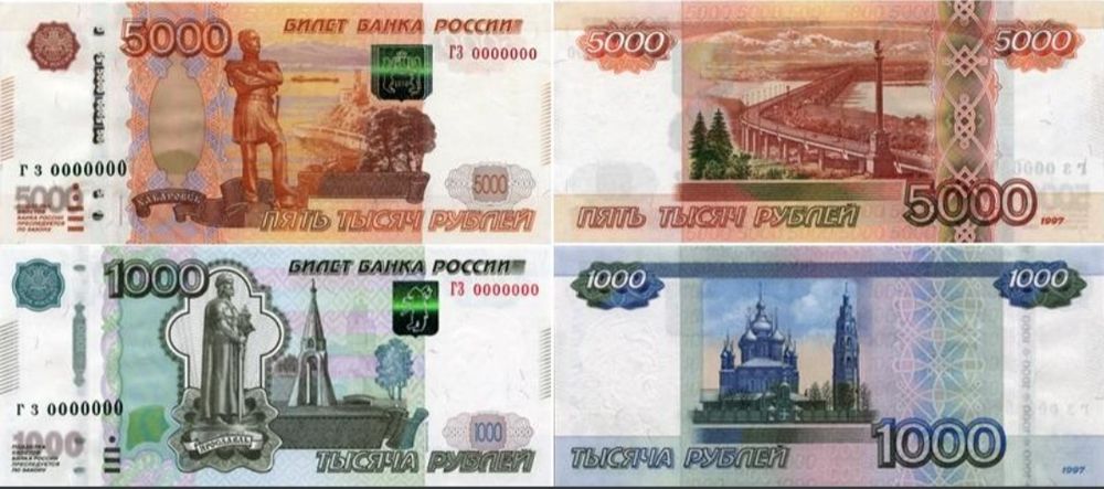 Russian Money in Denominations of Five Thousand Rubles and Two Thousand Rubles,