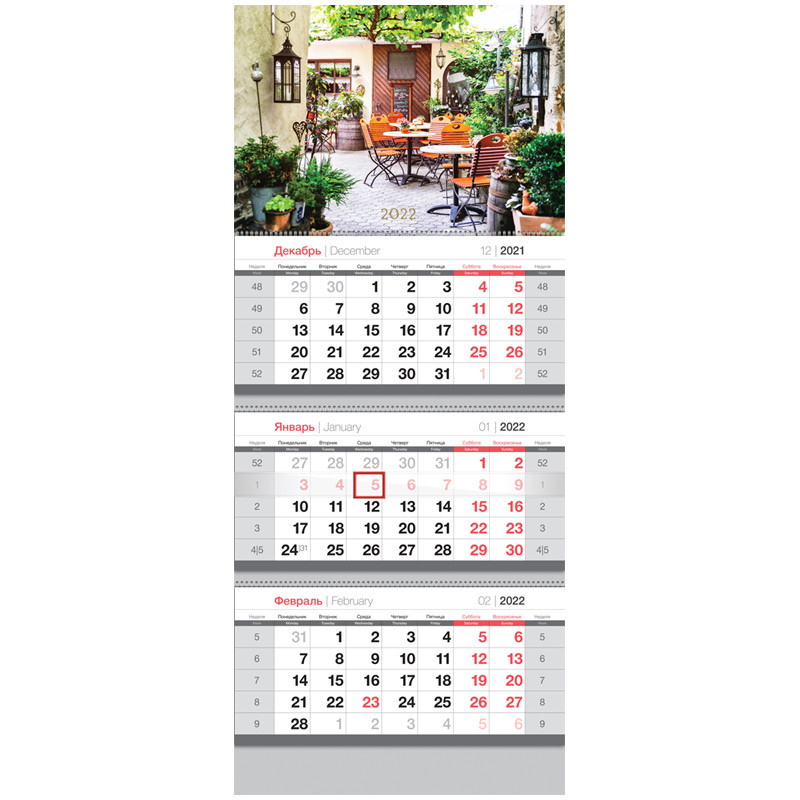 Календарь квартальный 2022 Летнее кафе, 295x660 мм, OfficeSpace - купить календа
