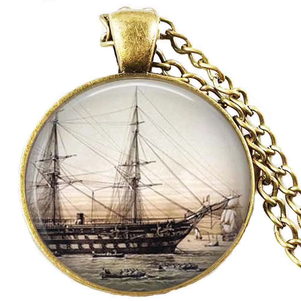 Vintage Ship necklace , Sailboat jewelry, Old Ship necklace , ancient ship penda