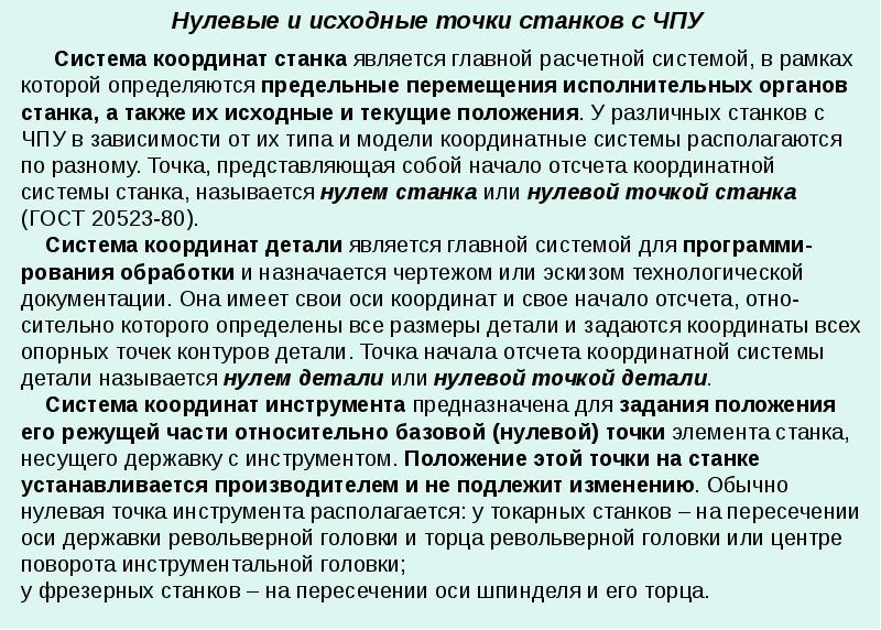 Нулевые, исходные и фиксированные точки станка с ЧПУ - Металлорежущие станки с Ч