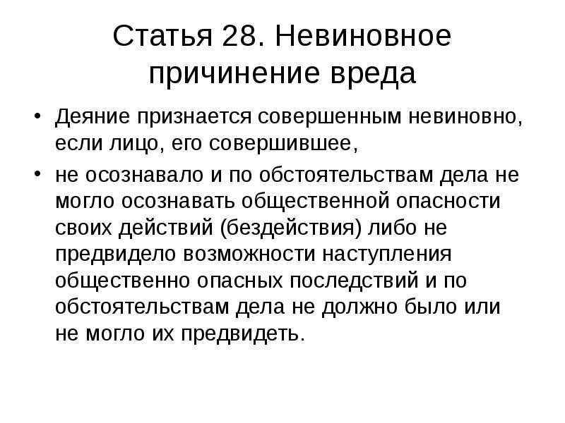 Невиновное причинение вреда - статья 28 УК РФ: состав преступления и нюансы квал