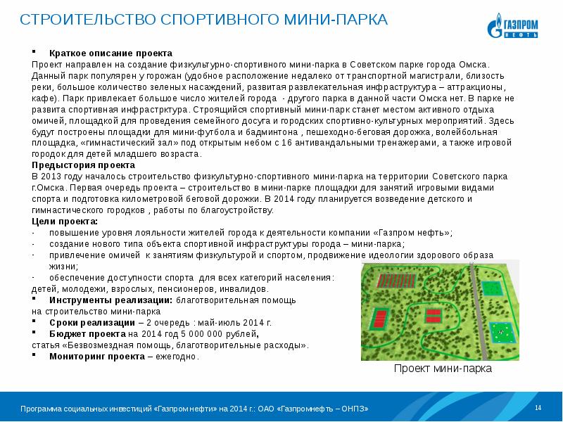 Программа социальных инвестиций "Газпром нефти" на 2014 г.:ОАО "Газпромнефть-ОНП