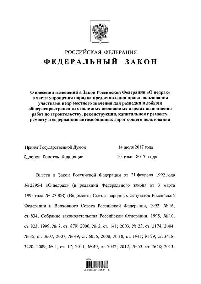 Книги - "О недрах. Закон РФ от 21.02.1992 № 2395-1 в редакции Федерального закон