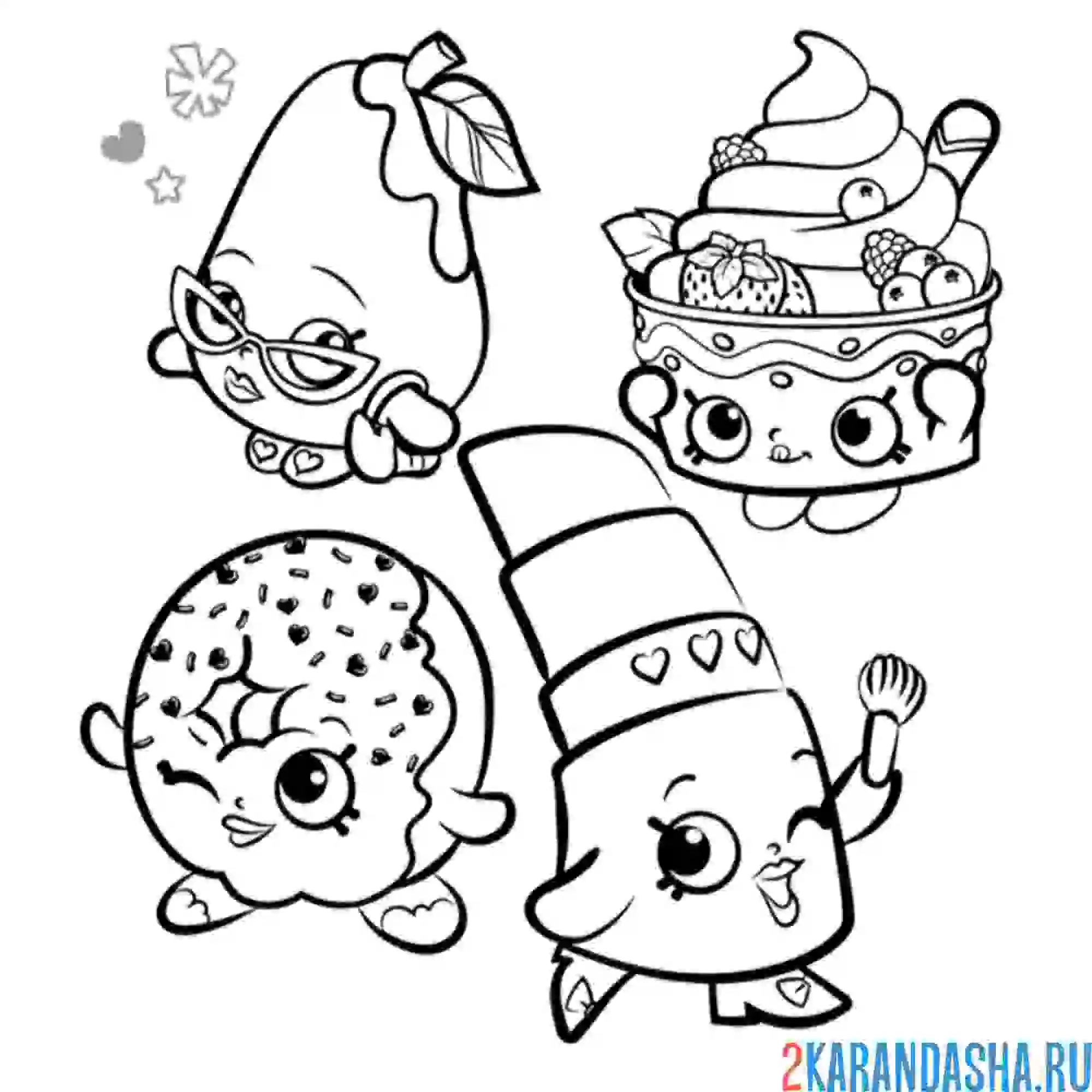 Раскраска шопкинс вкусная еда и помадка липпи для девочек