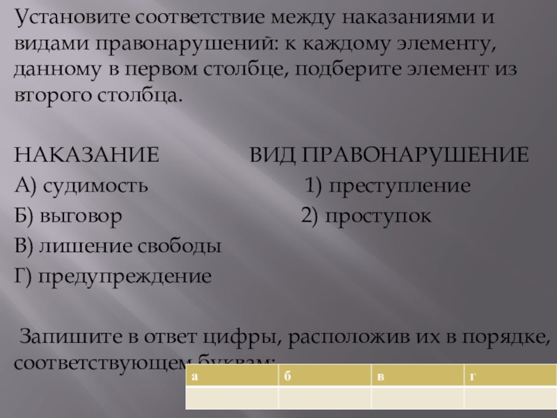 Установить соответствие между санкциями и примерами Презентация на тему "Социальный контроль" скачать бесплатно Найдите в приведенном ниже списке примеры иллюстрирующие применение формальных п Установите соответствие между санкциями и примерами - 83 фото Картинки УСТАНОВИТЕ СООТВЕТСТВИЕ МЕЖДУ ОПРЕДЕЛЕННЫМИ ДЕЙСТВИЯМИ Социальные нормы и социальный контроль Установите соответствие между примерами и типами санкций - найдено 88 картинок Установите соответствие между санкциями и примерами Установите соответствие между элементами электронными аналогами - TouristMaps.ru Установить соответствие между санкциями и примерами Установите соответствие между санкциями и примерами Установите соответствие между санкциями и примерами Установите соответствие между санкциями и примерами Установите соответствие между примерами понятия экономика Установите соответствие между видами ресурсов и факторами: найдено 85 изображени ЕГЭ обществознание Установите соответствие между примерами и функциями денег Установите соответствие между портретом автора: найдено 85 картинок Установите соответствие между характеристиками этапов создания Установите соответствие между санкциями и примерами Разное - Страница 446 - ICQ Information Center. Продажа ICQ. Продажа уинов. Прод Photos УСТАНОВИТЕ СООТВЕТСТВИЕ МЕЖДУ САНКЦИЯМИ И ПРИМЕРАМИ Установите соответствие между понятиями и их определениями фото Shkola-2.ru #ЕГЭОБЩПРАВО_ЗАДАНИЯ:PART_B Establish a correspondence between misdemeanors and 3 примера формальных неформальных позитивных негативных санкций: найдено 71 карт Презентация на тему "Социальный контроль" скачать бесплатно Установи соответствие между типами санкций Установите соответствие использование в быту отопления Da-Remontu.ru Установите соответствие между элементами электронными аналогами - TouristMaps.ru Подготовка к ЕГЭ по обществознанию - презентация, доклад, проект скачать Установите соответствие между видами информации и примерами Установите соответствие между рисунком и характеристикой действий игрока или ком Установите соответствие физическое лицо - 34/48 Установите соответствие между словами - 32/48 Установите соответствие между видами искусства и примерами Фотографии УСТАНОВИ СООТВЕТСТВИЕ МЕЖДУ СВОЙСТВАМИ Какой должна быть экономическая политика России в условиях санкций - Блог Юрия С Установите соответствие счетов: найдено 82 картинок Установите соответствие между устройствами компьютера и функциями Установи соответствие 5 баллов Установите соответствие между ошибками и предложениями Пожаловаться